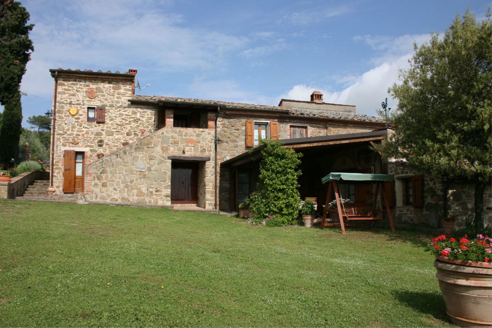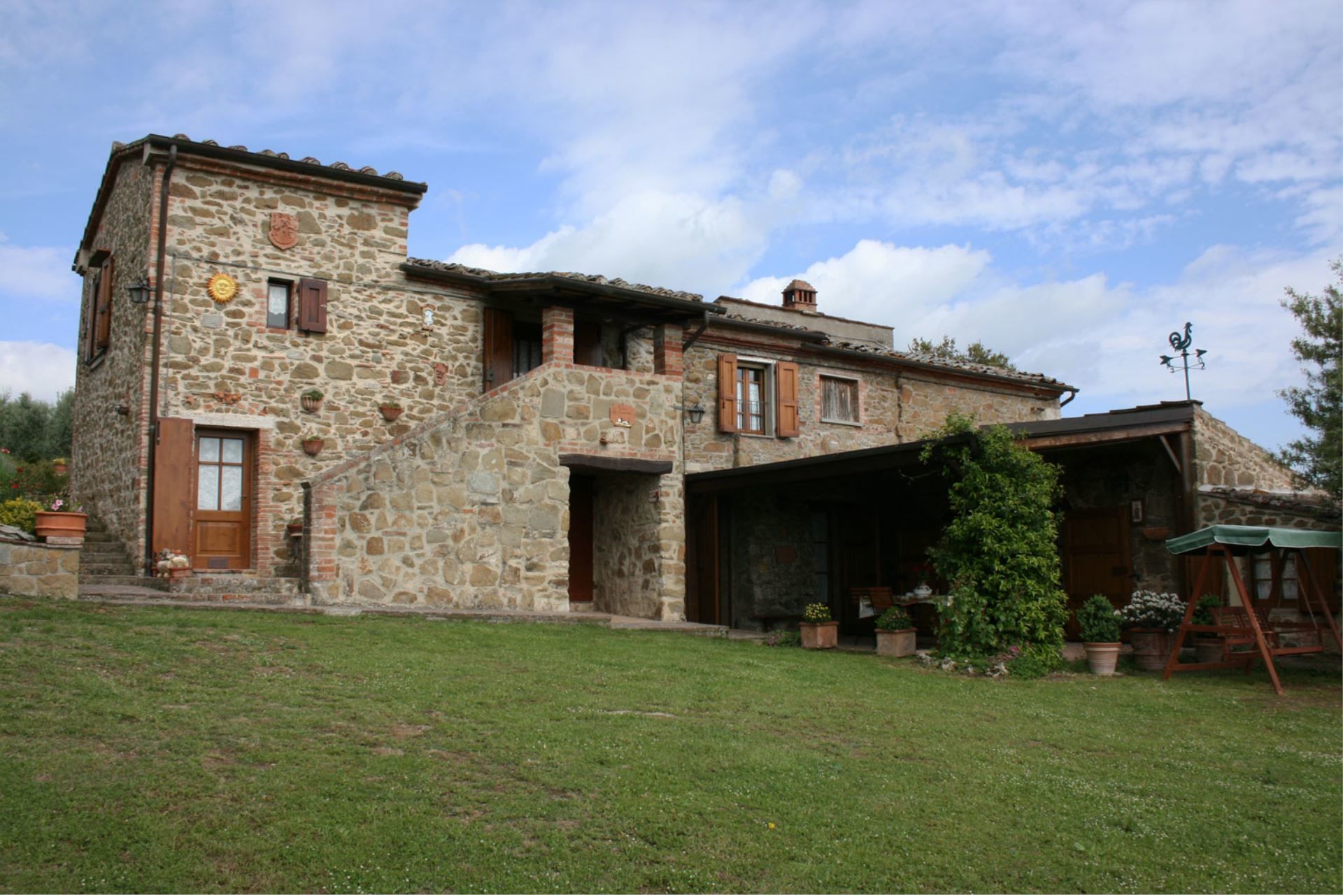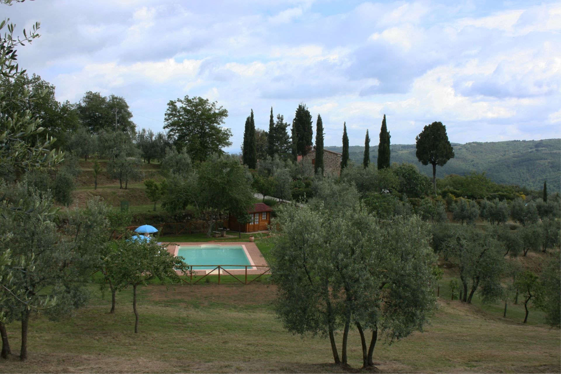 Podere Capanne est une partie d'une ancienne ferme placée sur les collines qui dominent le village médiéval suggestif de Rigomagno et une grande partie de la grande vallée de Chiana. Vous trouverez la maison dans un paysage couvert pour la plupart par des oliviers, interrompu ici et là par de petits vignobles ou des bois de chêne luxuriants. Les fermes anciennes, toujours dans des positions privilégiées, émergent de la végétation en complétant un paysage naturel de beauté rare. Un plaisir pour vos yeux, un endroit enchanteur pour vos vacances.