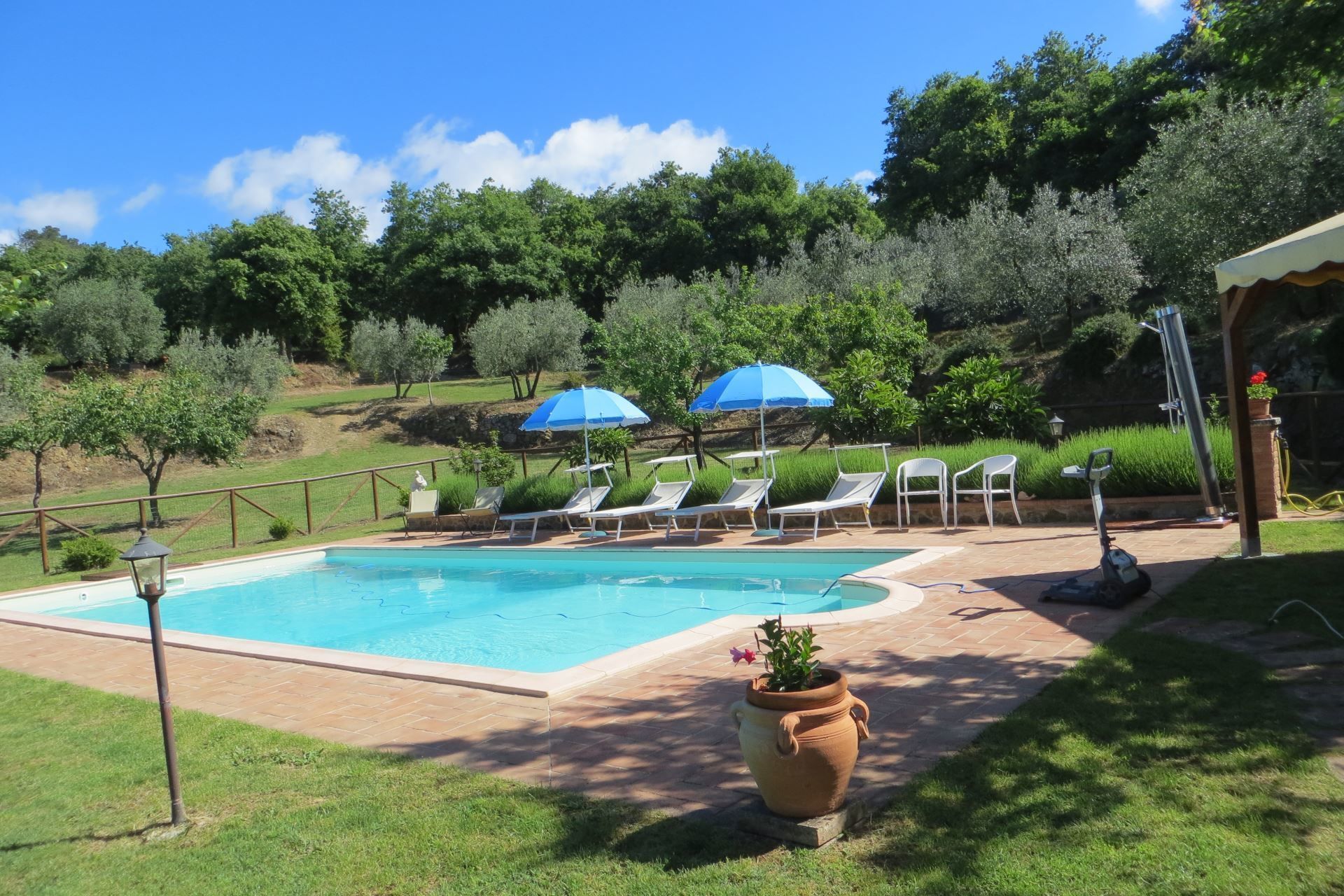 À quelques pas de la maison et immergé dans les oliviers est la piscine entièrement clôturée et pour votre utilisation exclusive (dimensions 5x10 m. - profondeur 1,10-1,50 m. - ouvert du 01 Mai au 30 Septembre), Une oasis vert pour vos jours d'été. Devant la maison, vous aurez une grande cour clôturée équipée de table et de chaises placées dans le magnifique porche, où vous pourrez profiter du vin local grillé et bon. Terres, chaises longues, table de ping-pong, barbecue, 2 vélos et espace de stationnement ombragé également disponible. Au Podere Capanne, vos animaux sont les bienvenus.