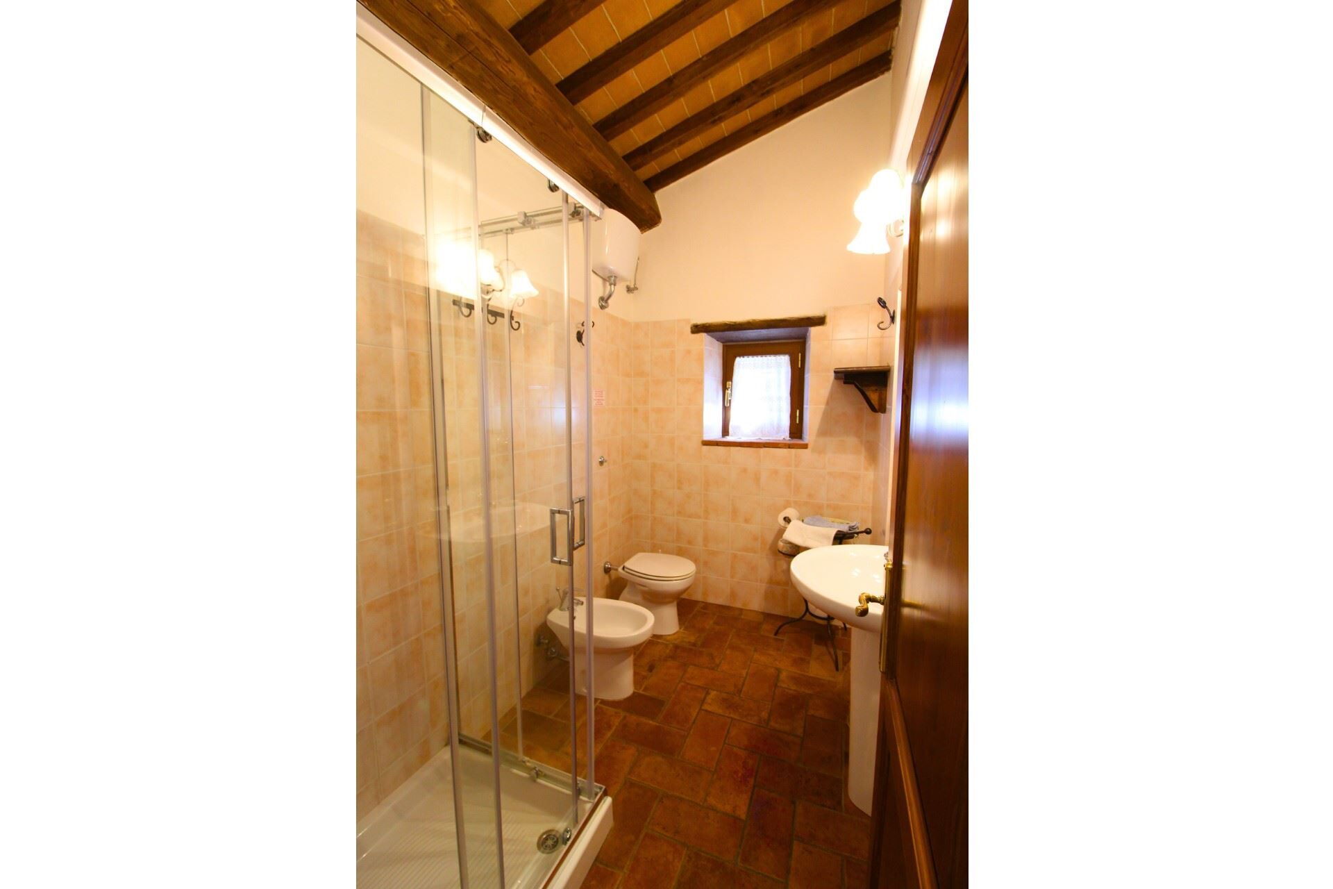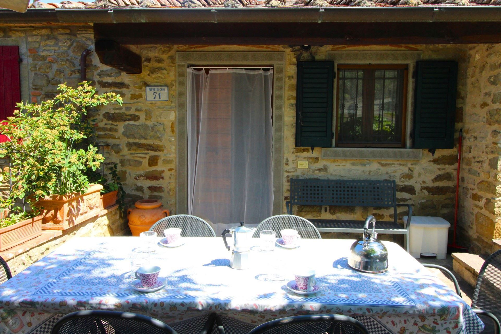 The pool is huge, and very private and has an amazing view down into the valley and across to Castiglion Fiorentino and surrounding hills. There is plenty of room in the grounds, which are covered in olive trees, some fruit trees and lots of flower planters. You really do feel as if you are away from everything. Just bring lots of insect repellent for the evening.