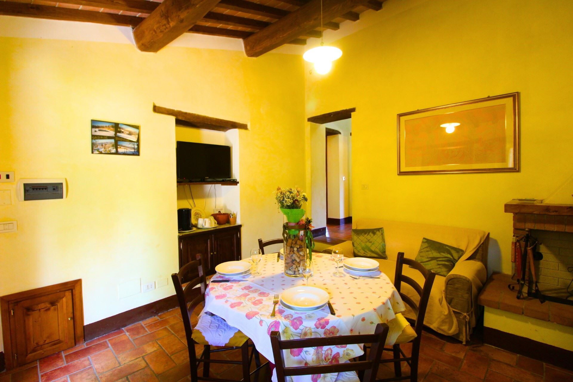 A quelques kilomètres de Castiglion Fiorentino et de Cortona, en remontant les pentes de la colline de Montanina, vous trouverez La Montanina, une partie récemment rénovée d'une ferme typique, qui a conservé ses caractéristiques architecturales d'origine. La façade en pierre, la cheminée du séjour, les poutres en bois des plafonds et les couleurs chaudes des meubles et des peintures vous accueilleront dans ce petit nid douillet, vous replongant dans la vie à la campagne d'autrefois.