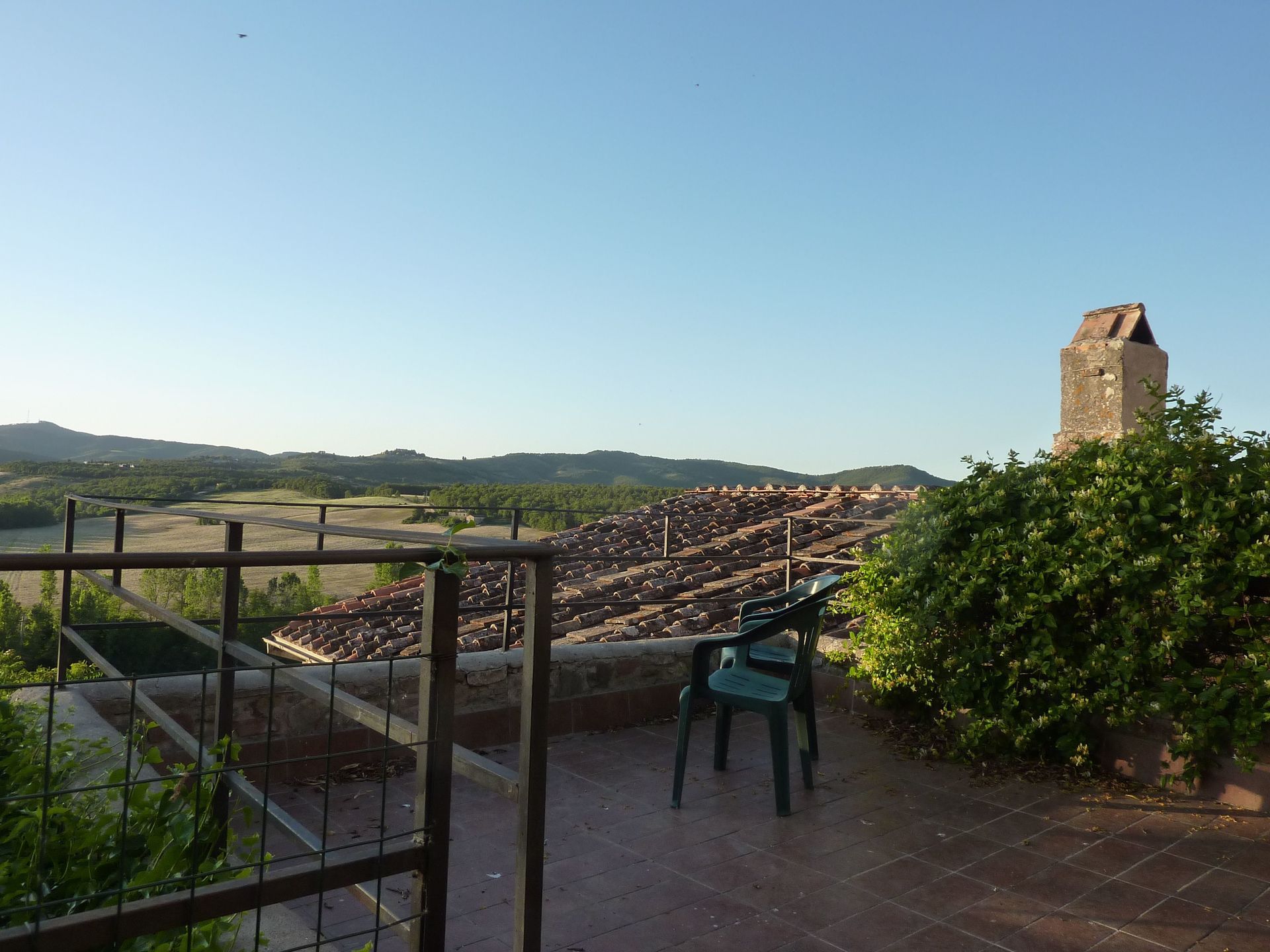 large kitchen with fireplace and view over valley,
