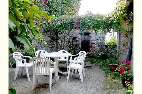 Telephone, washing machine, furnace heating. Shaded patio with table for outdoor dining.