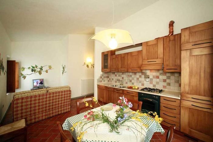 Apartment for 4 people on the first floor consisting of a large kitchen/sitting/dining area, double bedroom, twin/double bedroom, bathroom with shower, and store-room.