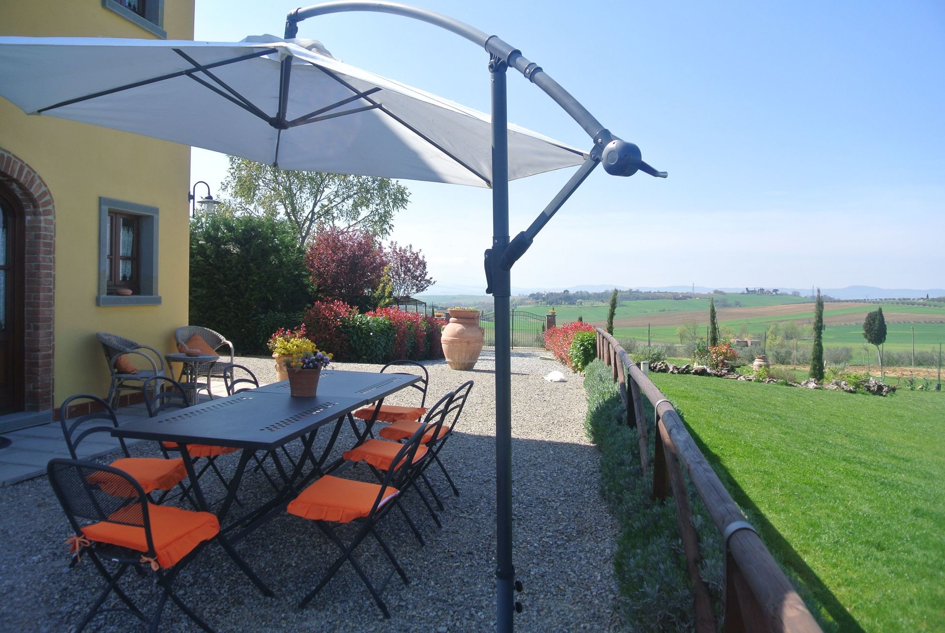 Imaginez ceci : une jolie villa dans une petite ville avec la verdure, des arbres et des vues sur les vignobles et les collines de la campagne toscane tout autour. Une entrée principale s'ouvrant sur une petite cour avec des fleurs et des arbres, des fleurs grimpantes et des vignes qui serpentent sur la façade ensoleillée de la villa, des fenêtres à volets verts; un balcon romantique au premier étage, au-dessus de l'entrée et un toit en terre cuite pour couronner le tout. C'est la première vision de rêve que les clients ont, lorsqu'ils atteignent la Villa Toppani Del Sodo et cela donne le ton pour vos vacances ici.