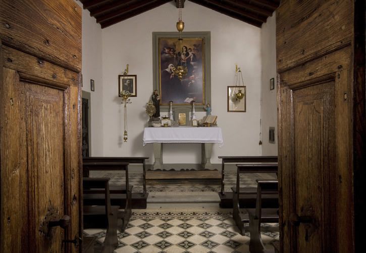 The Torre (or "Tower") apartment is located within the Medieval tower. The ground floor comprises a lounge/kitchen with double sofa bed and TV, fireplace and WC; the first floor plays host to a double bedroom and bathroom with shower; and the second floor includes a double bedroom with an additional third bed. The slotted windows of the second-floor bedroom look out over the garden and the swimming pool.