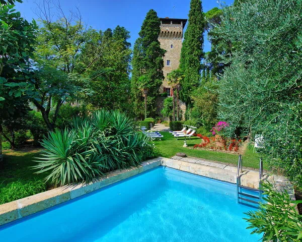 The noble residence "Rocca di Cetona" is set majestically on top of a hill with commanding views over the Chiana Valley and its Tuscan countryside, surrounded by the historic town of Cetona. A former Etruscan residence with three towers of which only one remains, it has become part of this 17th Century Villa, surrounded by 2 acres of parkland. An architectural treasure that for generations has been witness to more than two thousand years of historic Events and Passion.