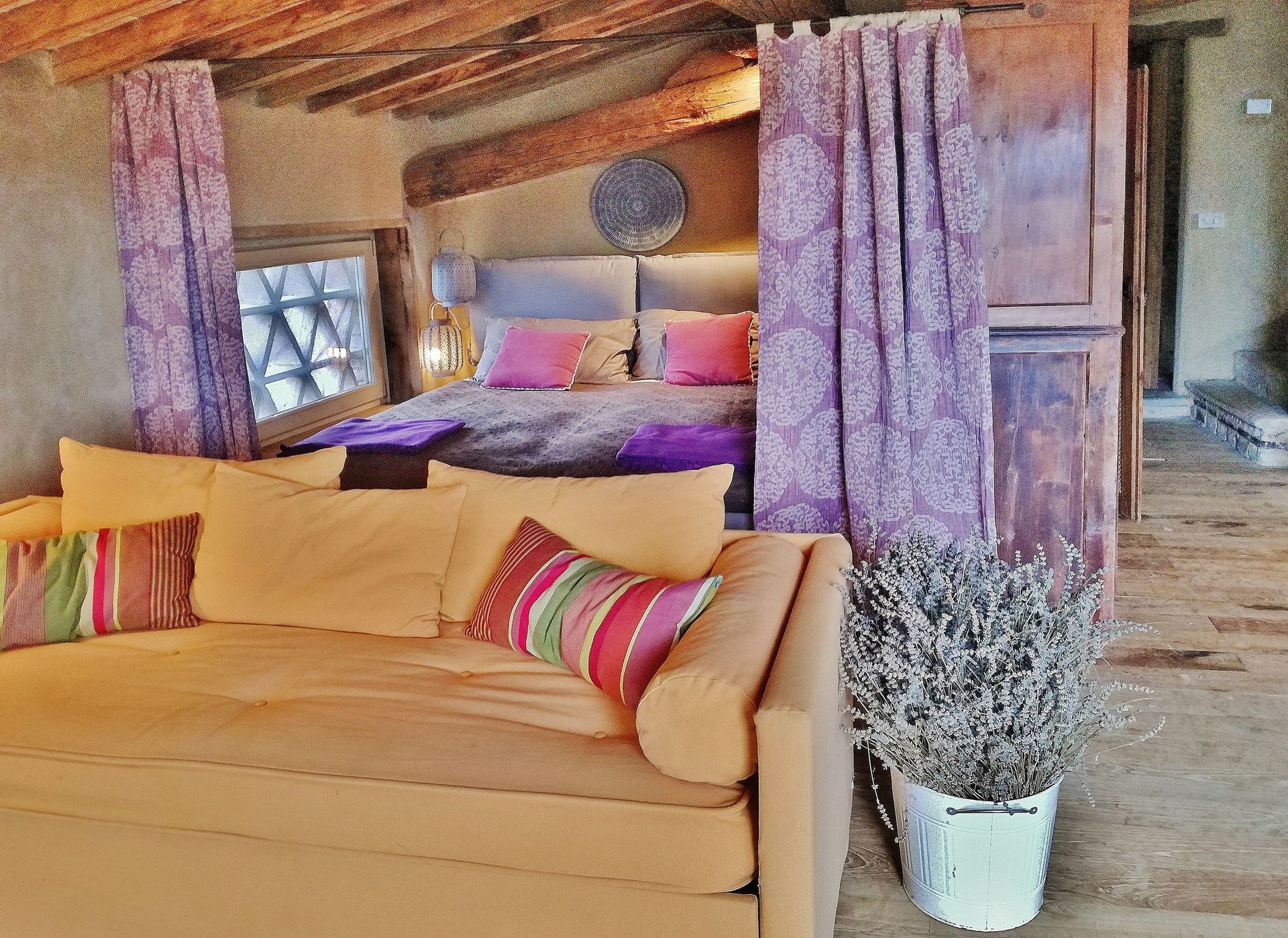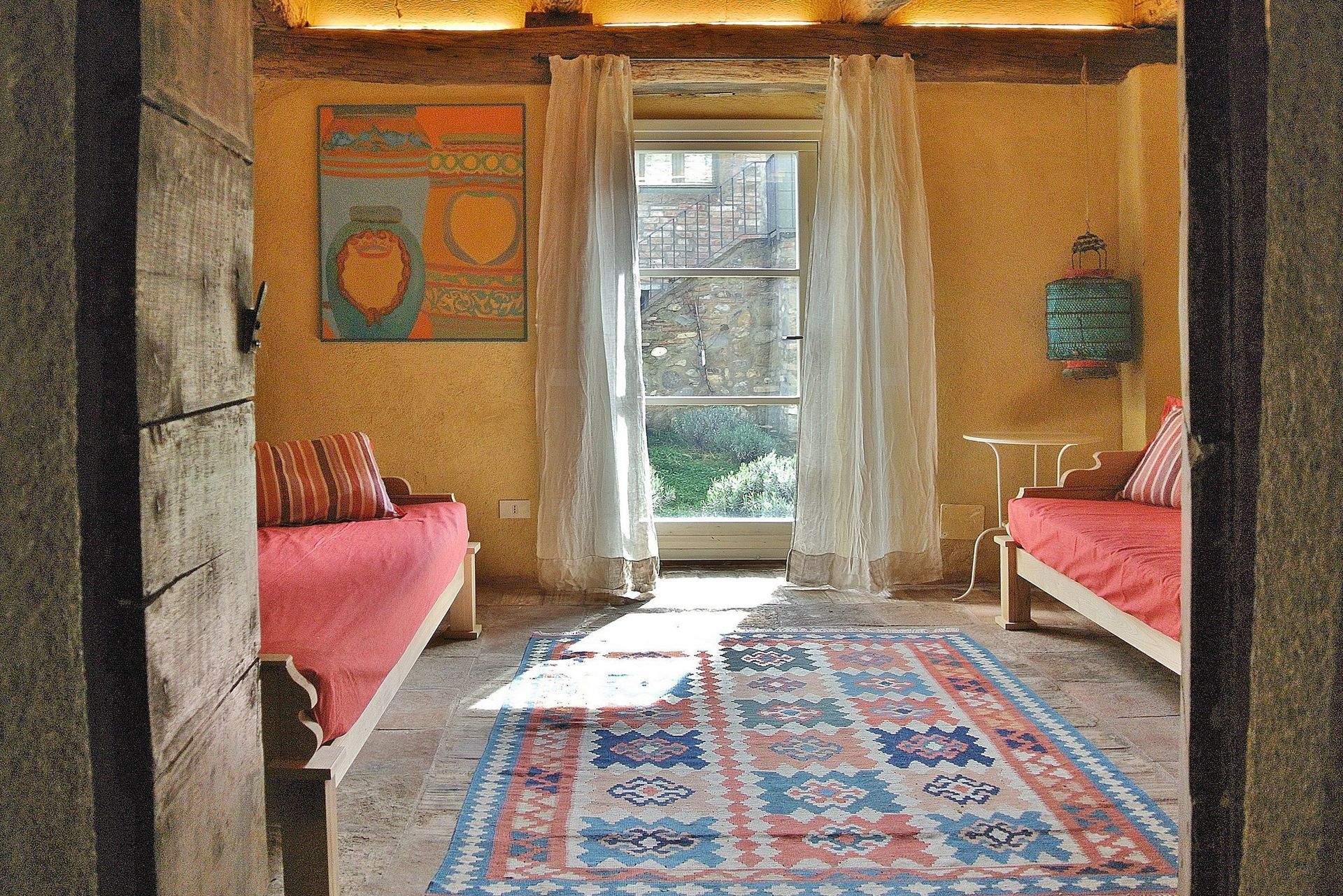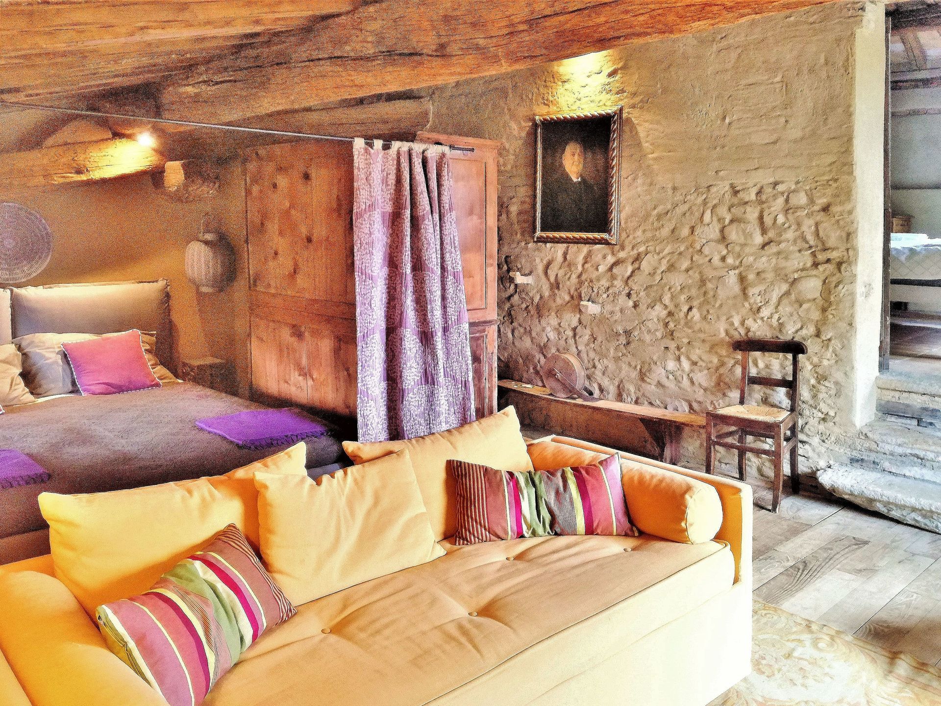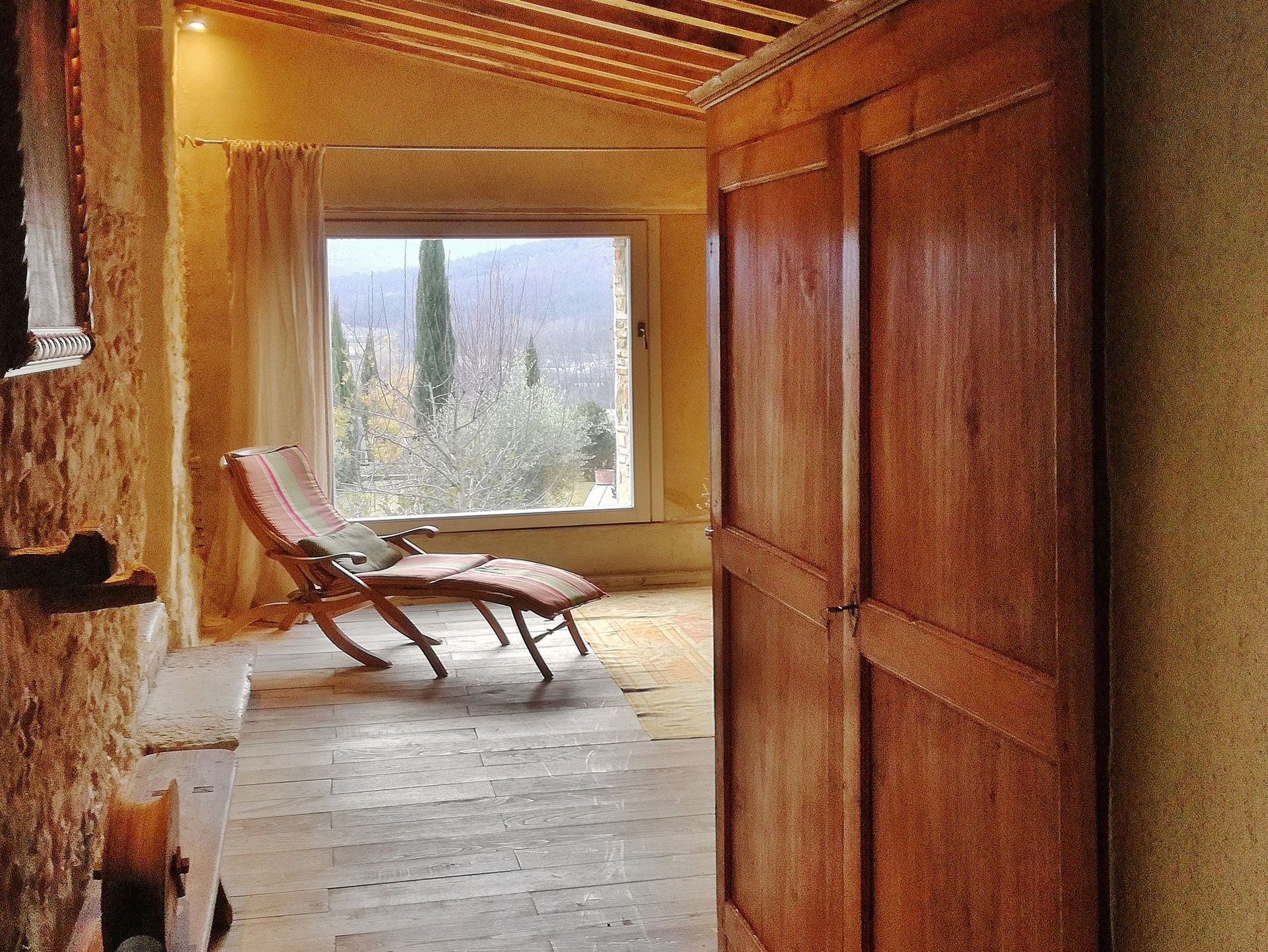3 marches plus haut: une chambre double avec vue panoramique, une chambre avec 2 lits à une place.