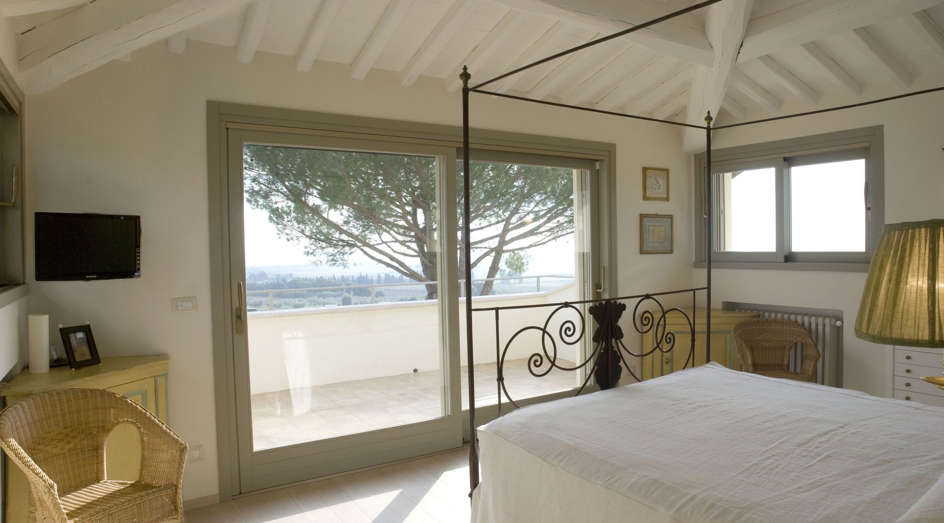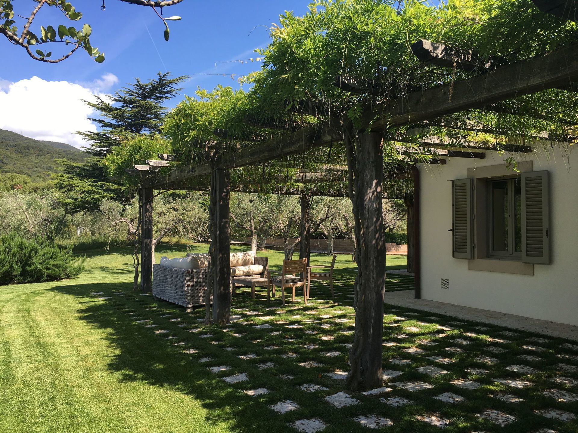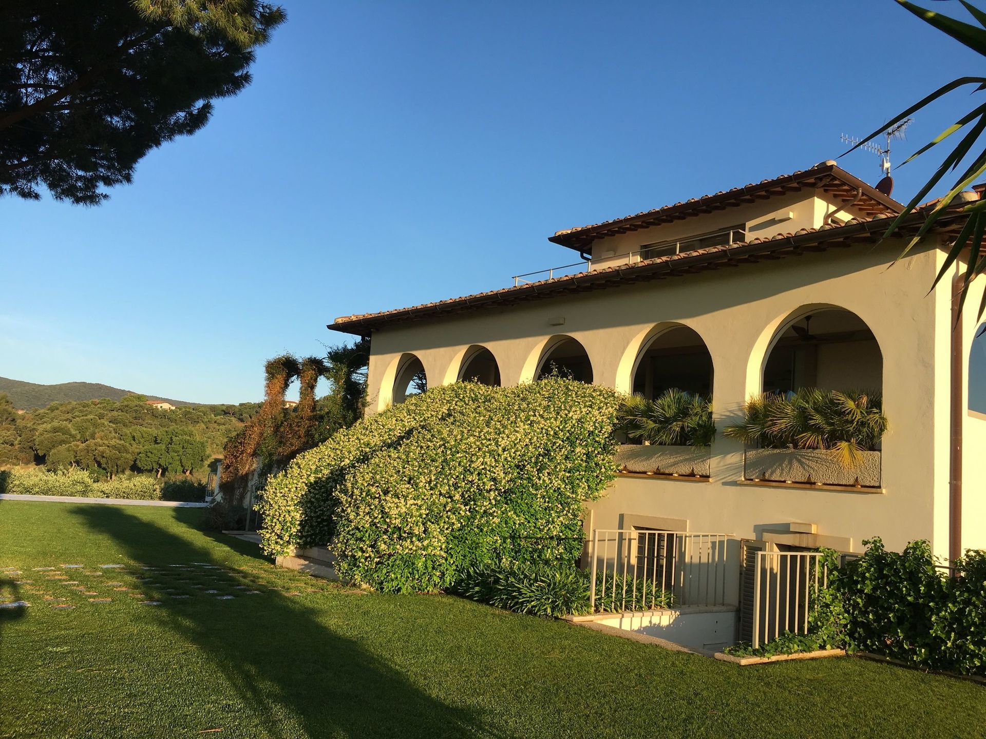 Cette belle villa est située au sommet d'une petite colline au milieu des vignes suggestives et jouit d'une vue à couper le souffle sur une zone intacte avec une réserve naturelle et surplombant la côte jusqu'à l'île de Giglio. Le logement est divisé en 2 ailes, indépendantes et communicantes, ce qui le rend idéal pour deux familles souhaitant passer des vacances ensemble tout en conservant leur intimité. Les deux salons ont des grandes portes coulissantes en verre qui peuvent être gardés ouverts pour renforcer un sentiment de continuité avec l'extérieur. Les chambres, toutes avec leur propre salle de bain, ont un accès direct soit sur le jardin ou sur les terrasses. La piscine offre une pergola couverte équipée d'un barbecue. Une caractéristique particulière est la terrasse meublée couverte devant la villa où il est possible de manger à l'extérieur en profitant des couchers de soleil les plus fantastiques sur la mer.