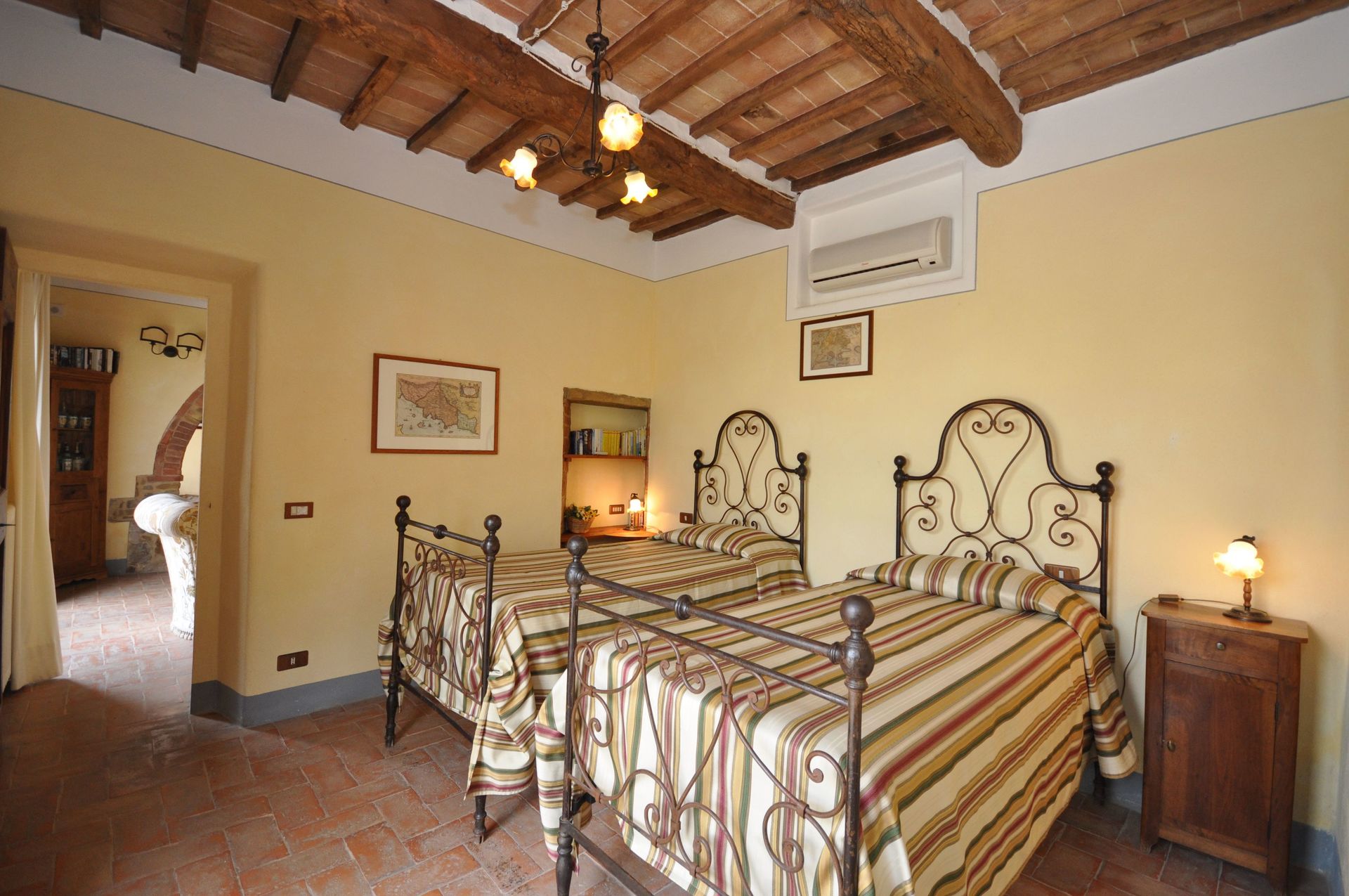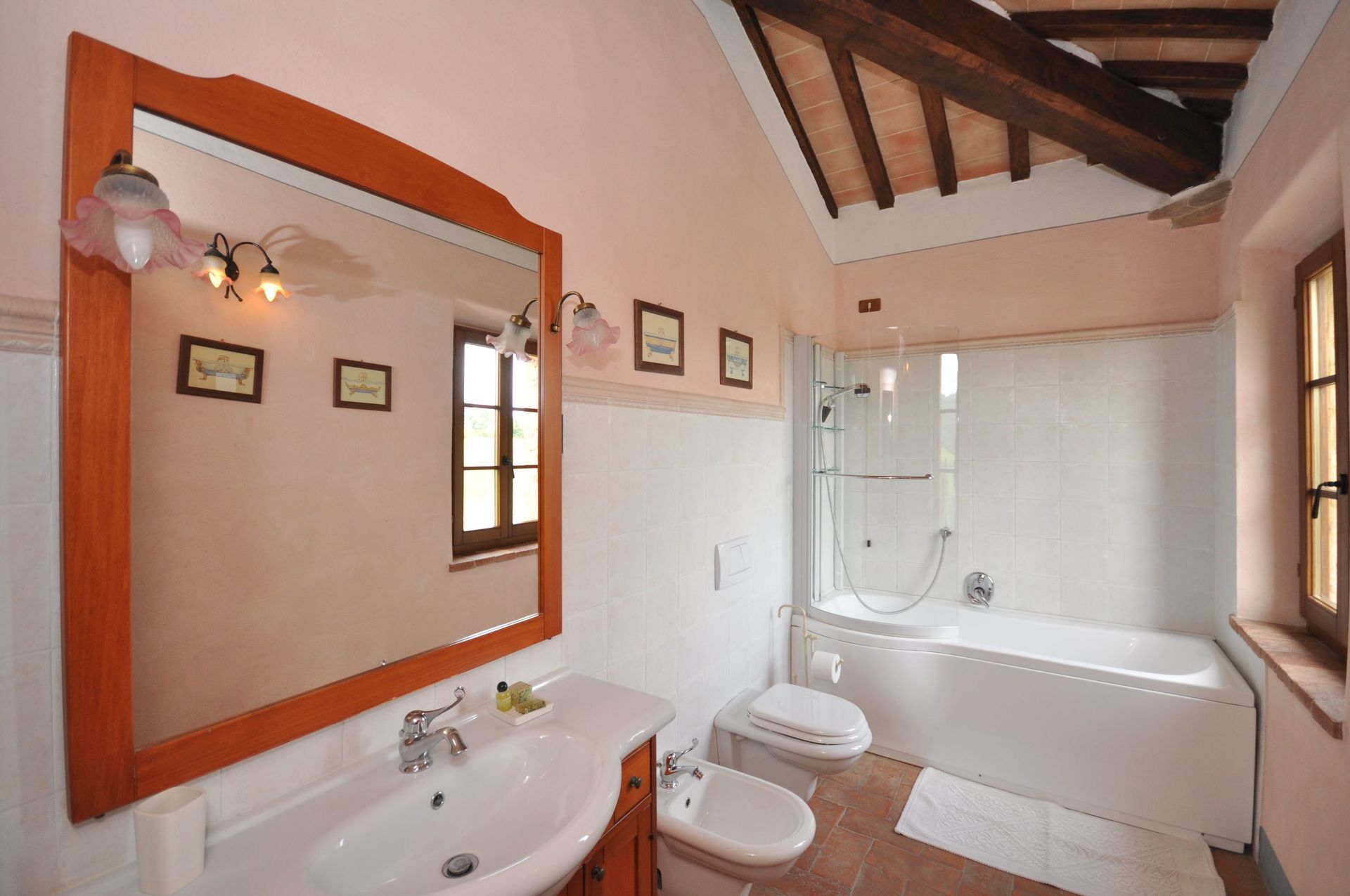 La propriété est située en position tranquille et jouit d’une belle vue. La villa a été complètement restructurée avec goût et soin, sauvegardant le charme et les caractéristiques de l’architecture d’origine et des vieux matériaux comme la pierre et la terre cuite et transformée en une accueillante maison de campagne. L’ameublement est confortable avec quelques pièce d’antiquité en parfaite harmonie avec le cadre.
