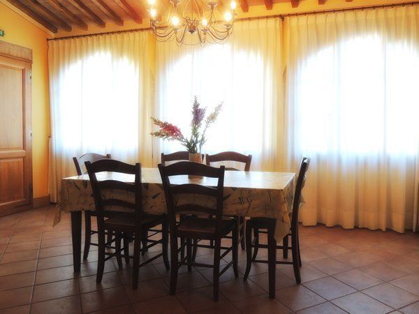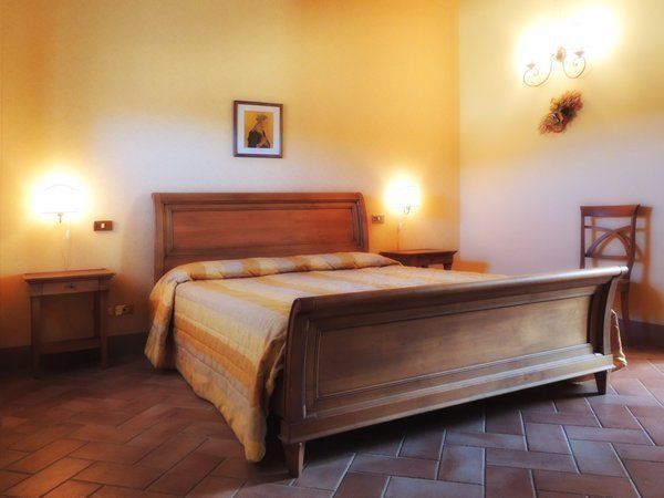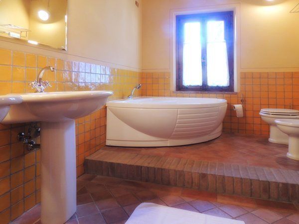 105 m². 6 personnes. Situè au 1er ètage. Accès par un escalier (en commun avec un autre appartement) juste au centre du vieu batiment qui face la petite place du domaine, l’appartement est meublè en style typiquement toscane. Dans le grand sèjour/salle à manger, il y a un canapè-lit pour 2 personnes (supplementare, à payer extra) et la telè satellitare. La cuisine (integrèe à la salle à manger) est èquipèe avec frigo, four, 4 feux et lave-vaisselle. Il y a trois chambres doubles, (deux avec un lit matrimoniale et une avec deux lits singles). Une des deux chambres matrimoniales a l’accès direct sur une des deux salles de bain (avec la douche, le wc et le bidet). L’autre salle de bain a la douche, la bainoire, le wc et le bidet. Dehors, sur la petite place devant, des meubles de jardin sont mis à disposition . Chauffage au gaz mèthane gerable de façon autonome, non inclus dans le prix.