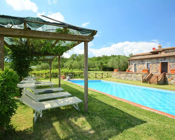 La piscine mesure 6 x 12 mètres avec une profondeur variant de 120 à 150 cm ; elle est disponible du 1er mai au 15 octobre. Une douche et des toilettes dédiées au bord de la piscine complètent ces installations. Une terrasse bien aménagée et une pergola offrent des zones ombragées propices à la détente ou aux repas en plein air, tandis que le mobilier de jardin invite à profiter des vues panoramiques sur la campagne toscane. Un toboggan extérieur et une balançoire sont à la disposition des familles avec enfants. Un barbecue et une table de ping-pong complètent les équipements de loisirs.