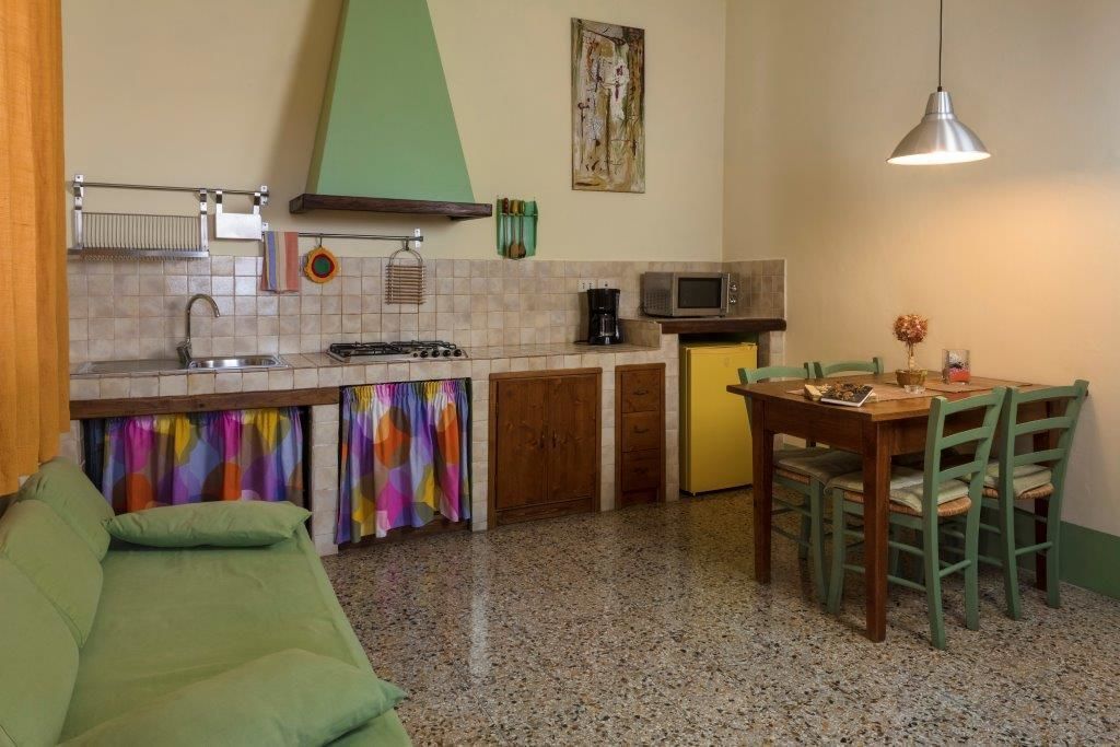 Excellent location to visit Siena, San Giminiano, Volterra and Florence plus local vineyards. Apartment is adequate, but before booking it was impossible to figure out which apartment has direct access to pool and private outdoor space. I have asked Easy reserve customer service, but they didn’t have that info and we ended up in Casa Edera that lacks both. That was little dissapointing. We still though had a short walk access to pool and beautiful gardens with panoramic views towards San Giminiano. Very friendly owners, but unfortunately I don’t speak much Italian, so communication was limited.