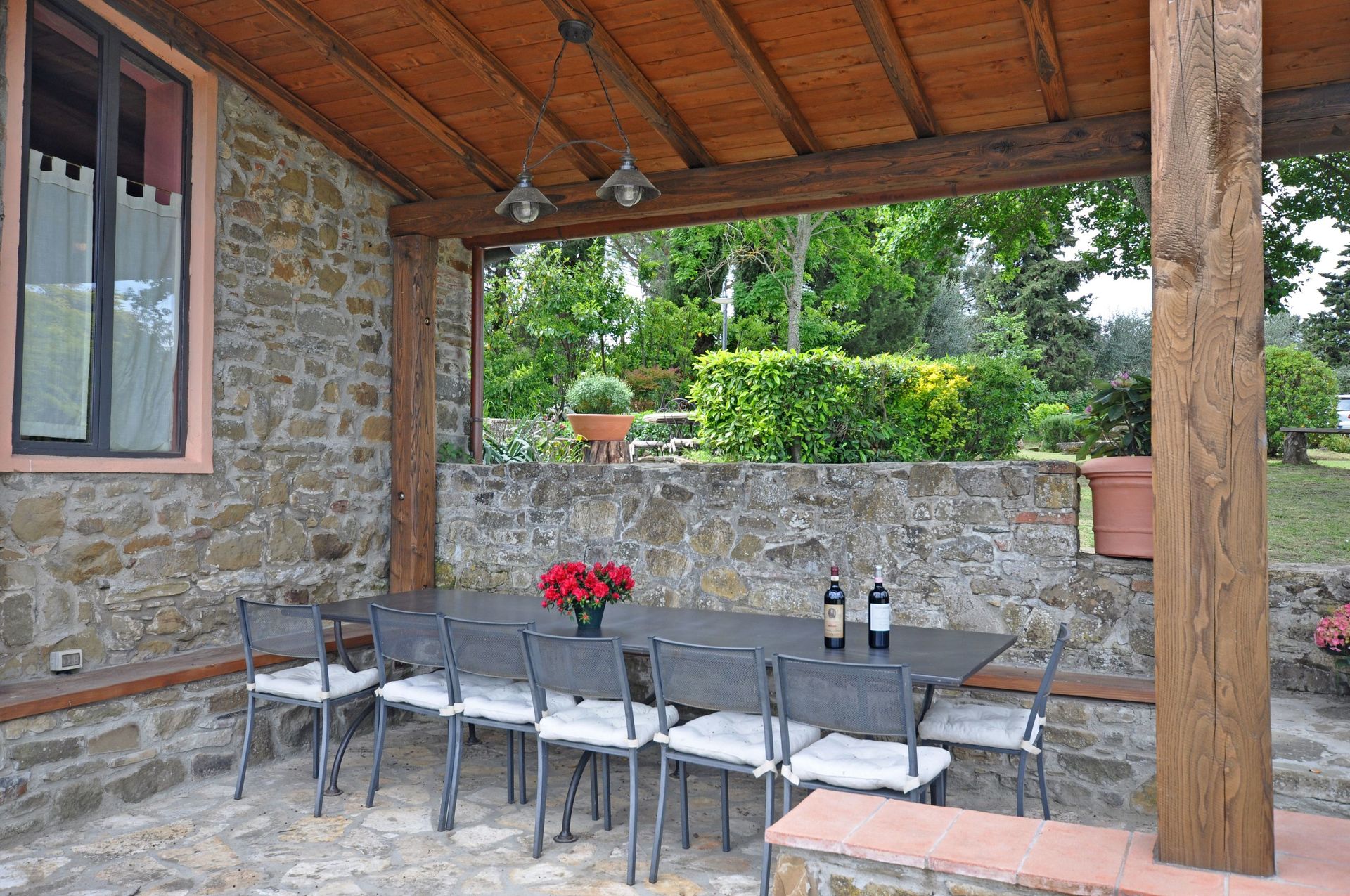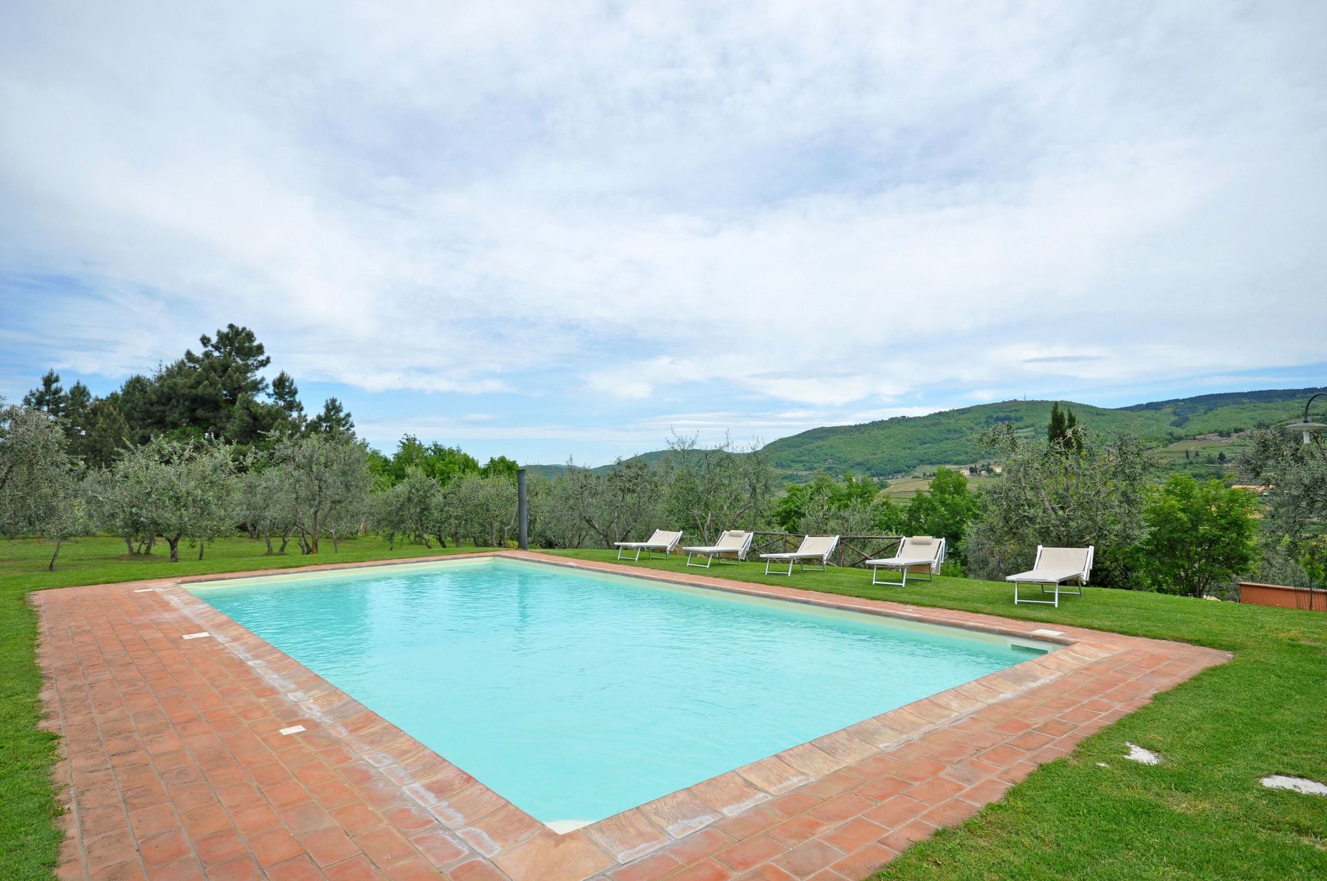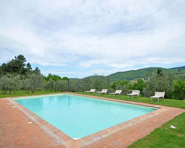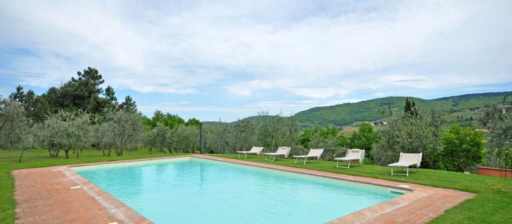 Belle villa individuelle avec piscine privée située dans la région du Chianti Classico, à 2,50km du village de Panzano. La maison se trouve au cœur d’une propriété de 3ha et dispose d’un grand jardin privé. Née de la restructuration d’une ancienne ferme, la villa se développe sur 2 étages. Les intérieurs sont confortables. La position est calme et panoramique. Dans un rayon d’environ 65km, tous les petits villages de la Région du Chianti Classico et les principales villes d’art comme Florence, Sienne, San Gimignano et Volterra.