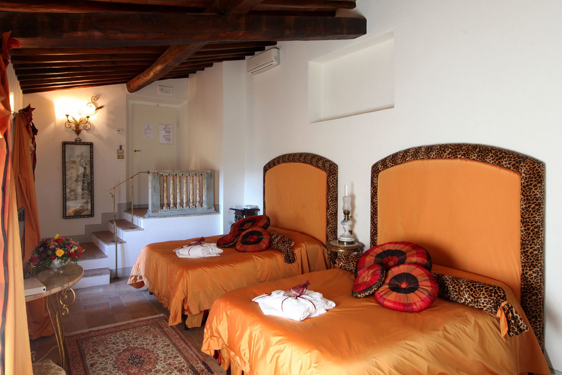 Spacious room with two double beds, ideal for families with children, and is furnished with genuine antiques, bathroom equipped with shower and bathtub with whirlpool.