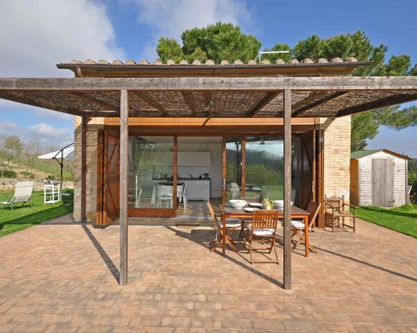 Ancienne grange récemment restructurée avec goût et soin à 3,50km de Sienne. Intérieurs lumineux de style moderne. La propriété est idéale pour un couple ou une famille de 4 personnes. Ameublement très confortable. Grand jardin bien entretenu et belle pergola avec table et chaises. Arrêt de bus pour Sienne à env. 150m.