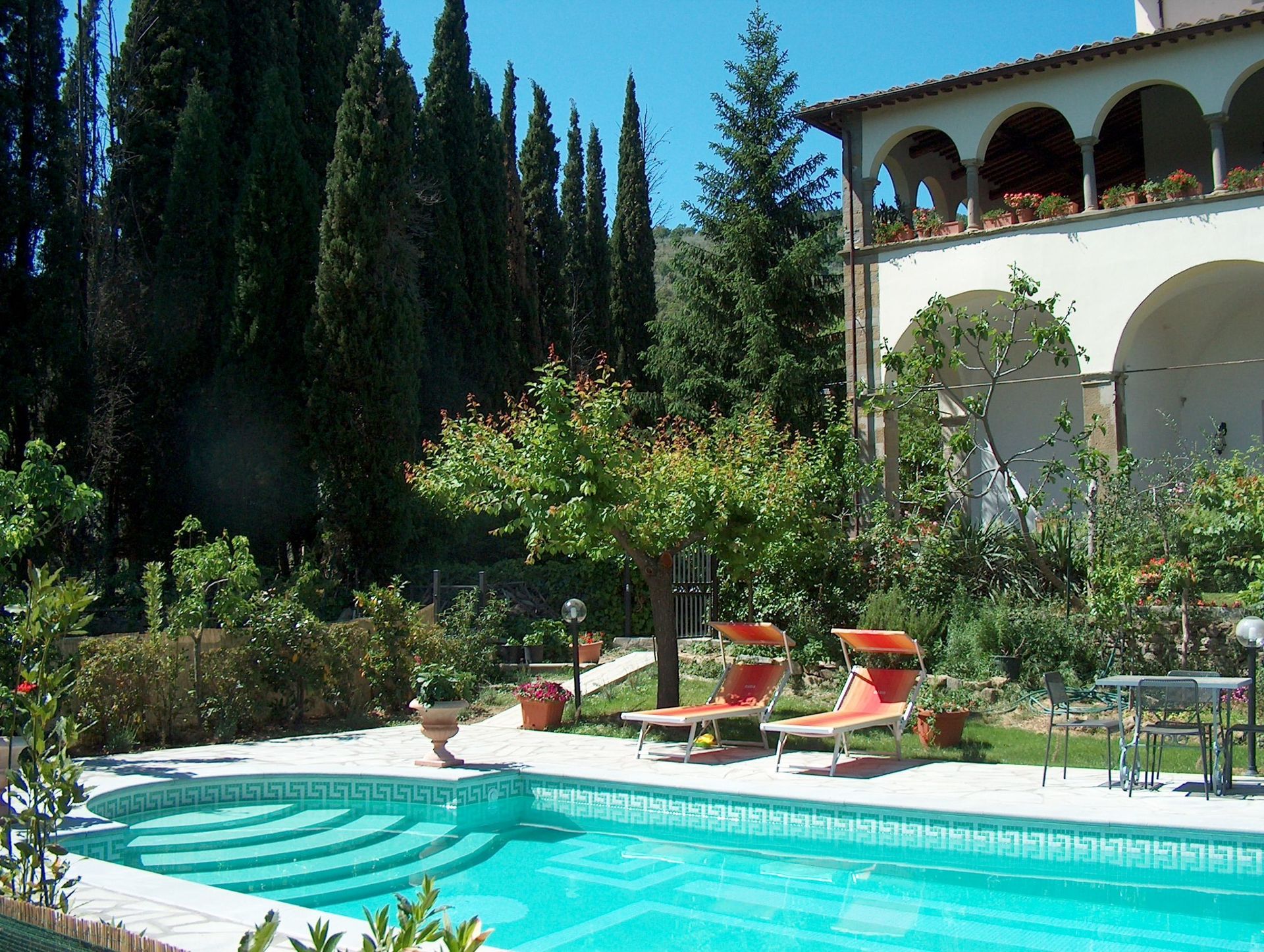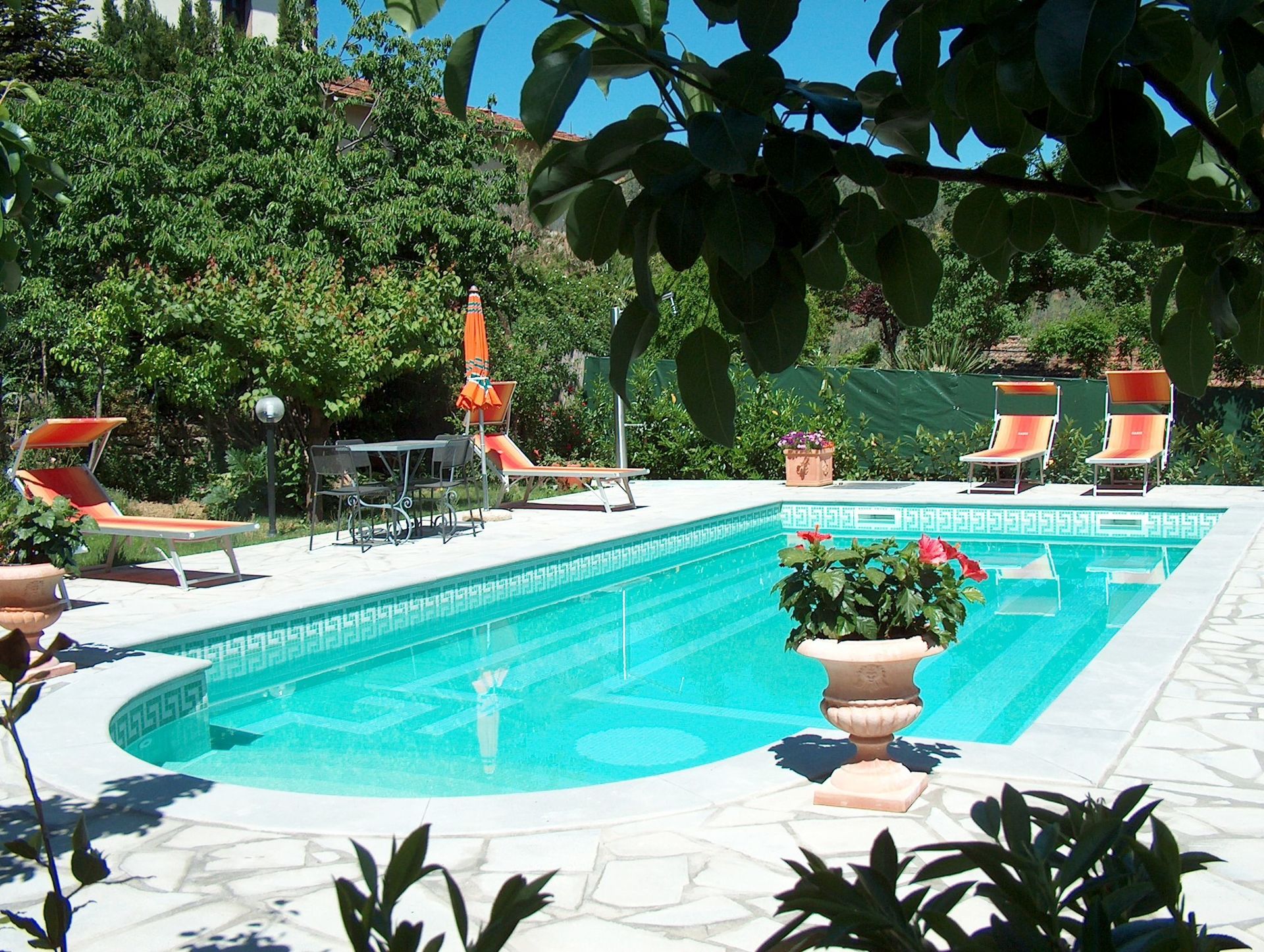 La piscine est en commun avec la propriétaire durant l'horaire du repas de midi. Les hôtes disposent également de deux grandes loggias et d’aires externes équipées. Ameublement très confortable et accueillant.