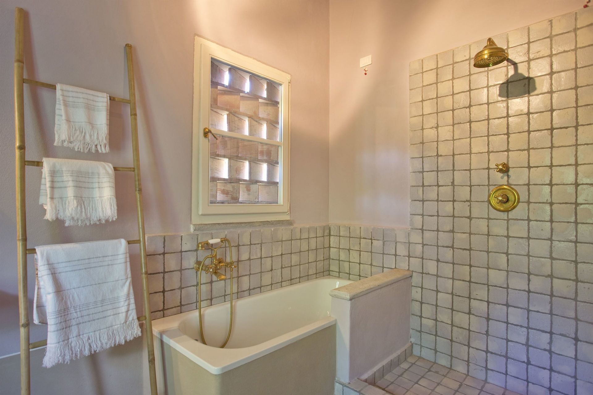chambre avec salle de bain 1: lit double, internet WIFI, climatisation, bassin, wc, bagnoire, douche, sèche-cheveux.
